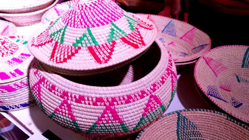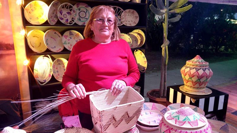 Julia Sánchez, vive en Las Termas de Río Hondo y desde niña también aprendió el arte de la cestería, con el cual hoy elabora costureros, paneras y fruteras, las cuales expone en su stand cada año en la feria.