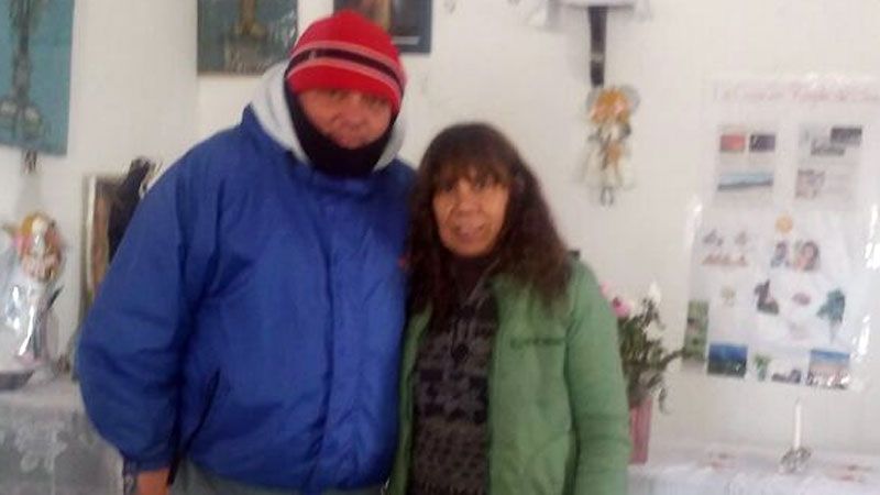 Un integrante de Hinchas Solidarios llevó ropa de abrigo para la parroquia Santa Rosa de San Pedro de Guasayán junto a su mujer.