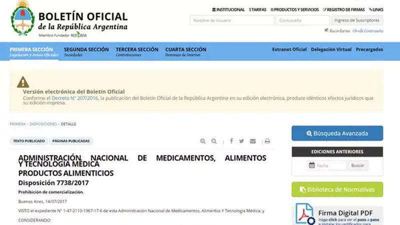 La Administración Nacional de Medicamentos, Alimentos y Tecnología Médica (ANMAT) emitió varias resoluciones para prohibir la comercialización y en algunos casos el uso y la distribución de productos médicos y alimenticios en toda la Argentina.