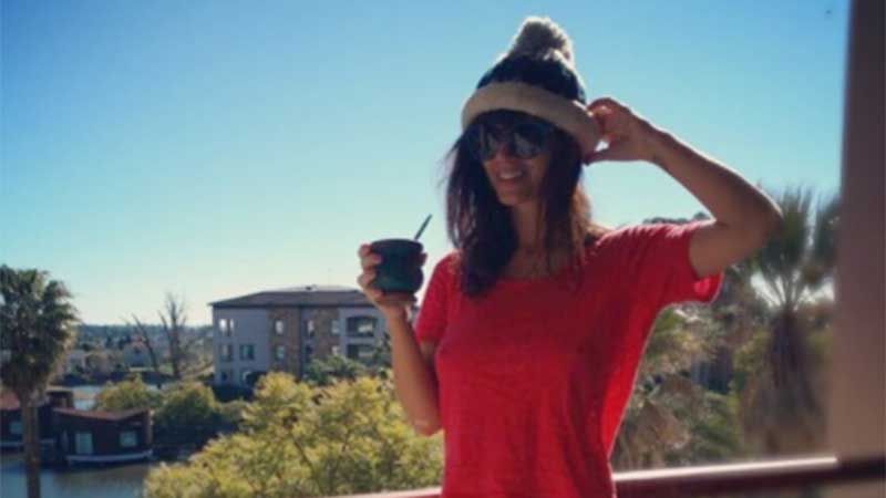 "Mateando bien abrigada #MartesSosMiDomingo", escribió con ironía la protagonista de Sugar y próximamente jurado de ShowMatch -cuando bailen Carolina Pampita Ardohain (39) y Moria Casán (70) la salsa de a tres- en su cuenta en Instagram. En la foto, se la puede ver con gorro y botas pero muy poca ropa.