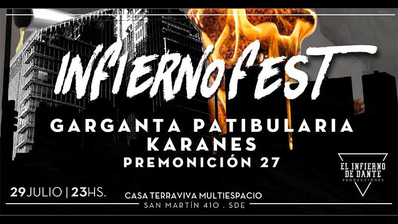 Organizado por El Infierno de Dante producciones, el evento promete todos los condimentos para disfrutar de un gran show con música local, donde Garganta Patibularia, Karanes y Premonición 27 serán los líderes de la noche.