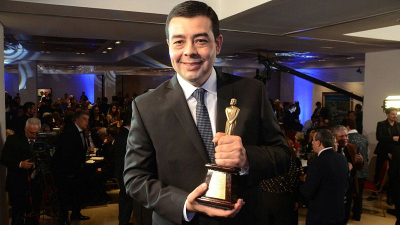 El conductor de Noticiero 7, Carlos Gómez recibió el premio homenaje a la trayectoria por parte de APTRA durante la entrega de los premios Martín Fierro Federal realizada en el hotel Amerian Carlos V de Termas de Río Hondo.
