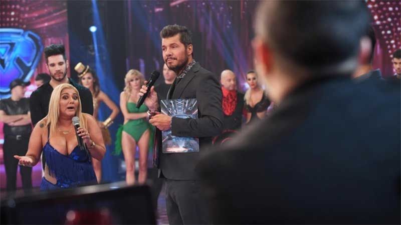 "Acabo de afanarme cuatro supermercados y te traje cosas para vos y para Guille (Guillermina Valdés)", le dijo Gladys a Marcelo Tinelli. Ella empezó tomándose el tema en broma cuando salió a la pista a recibir el voto secreto de Moria Casán.