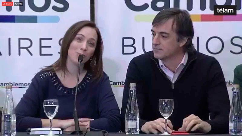 La gobernadora de la provincia de Buenos Aires brinda una conferencia de prensa junto a Esteban Bullrich.