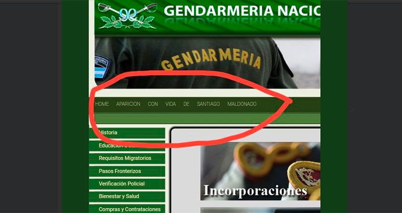 La página web de Gendamería Nacional fue hackeada en las últimas horas, adonde colocaron la leyenda "Aparición con vida de Santiago Maldonado", el artesano desaparecido el 1 de agosto en Chubut durante la represión de una protesta mapuche por parte de agentes de esa fuerza de seguridad.