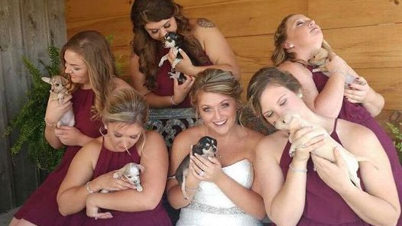 Las bodas son un lugar genial para conocer a la que podrá convertirse en tu pareja... o, por qué no, en tu mascota. Así lo quisieron Samantha Duckert y Kendel Clark, de Iowa (Estados Unidos), que celebraron su boda el pasado 9 de septiembre y, en lugar de flores, eligieron perritos.
