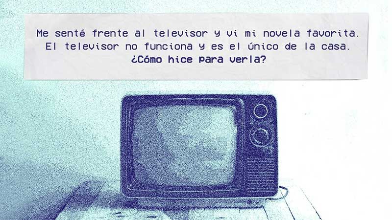 "Me senté frente al televisor y vi mi novela favorita. El televisor no funciona y es el único de la casa. ¿Cómo hice para verla?", relata la imagen de una tele con estática.