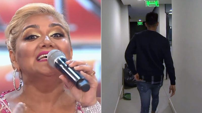 La cantante estaba disparando contra la participante del certamen y "El Bombito" se retiró muy enojado.