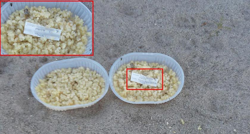 La misma consistía en dos fuentes de PVC con al parecer un poco de trigo hervido. Una de ellas tenía un papel con el nombre de dos personas, con una destacable caligrafía y las correspondientes fechas de nacimiento.