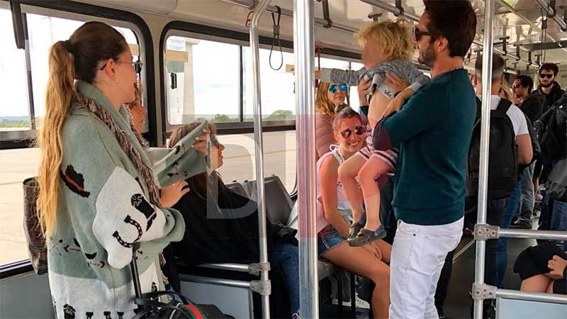La modelo llegaba con sus hijos a la ciudad uruguaya para pasar el fin de semana largo y en el aeropuerto se cruzó con su ex y Suárez, embarazada de seis meses. Una de las criaturas, al momento de despedirse, no paraba de llorar y decir "mamá mala, papá, papá"