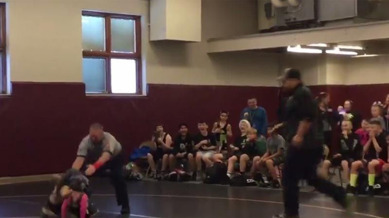 La familia es lo primero, o por lo menos así lo ve este niño de dos años. Es el protagonista de unas imágenes que están dando la vuelta al mundo. En ellas se ve al pequeño corriendo a rescatar a su hermana mayor, Ruby, durante un combate de lucha libre infantil en una escuela de Columbia City, en Indiana (Estados Unidos).