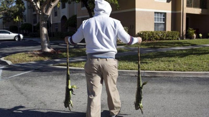 Según el Servicio Meteorológico Nacional estadounidense, en zonas del sur de Florida hubo temperaturas bajo cero y en los suburbios de Miami se reportaron muchísimas iguanas halladas en tierra paralizadas por el hielo.