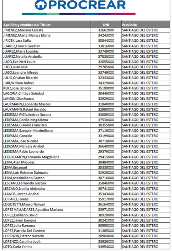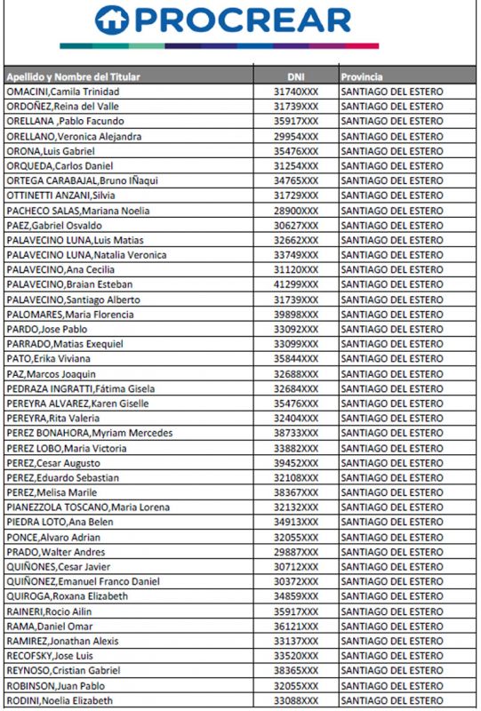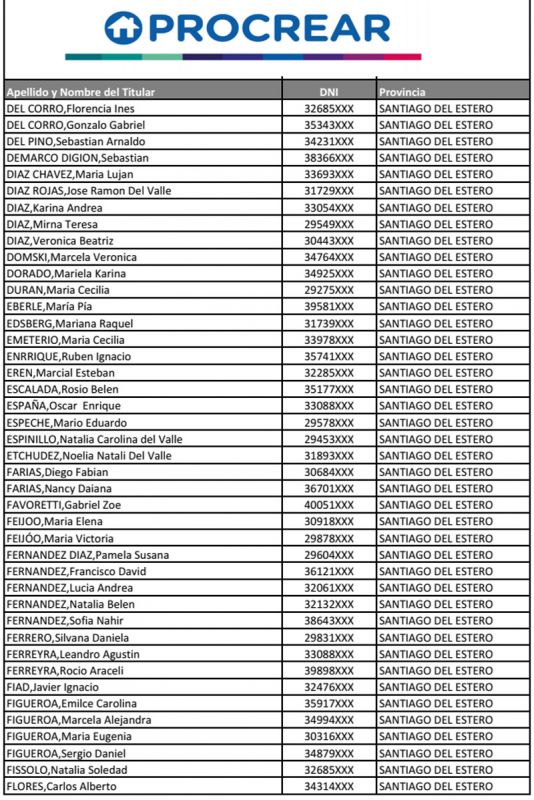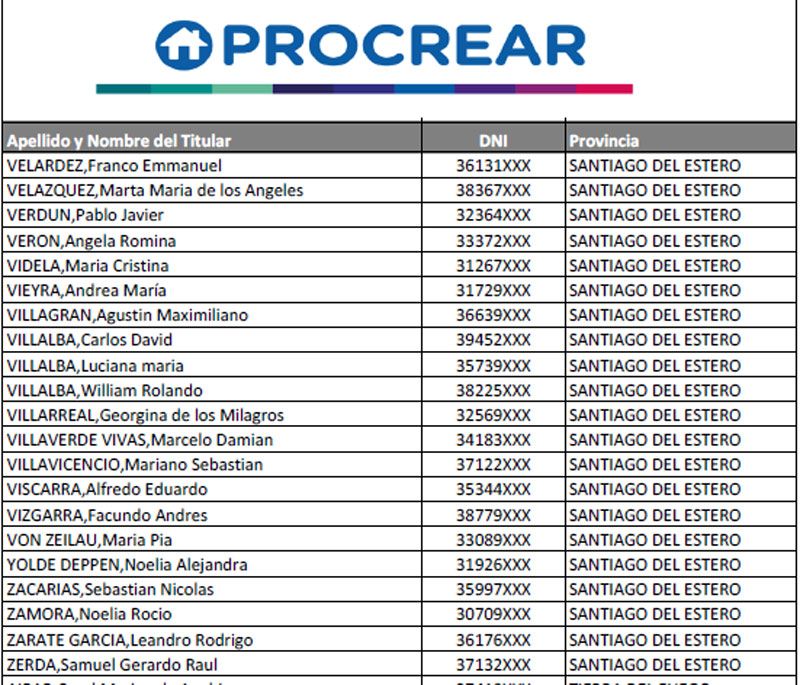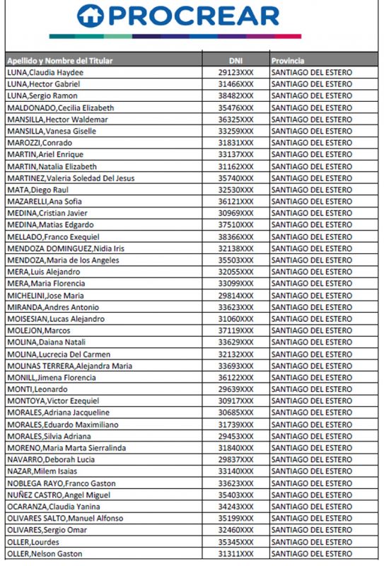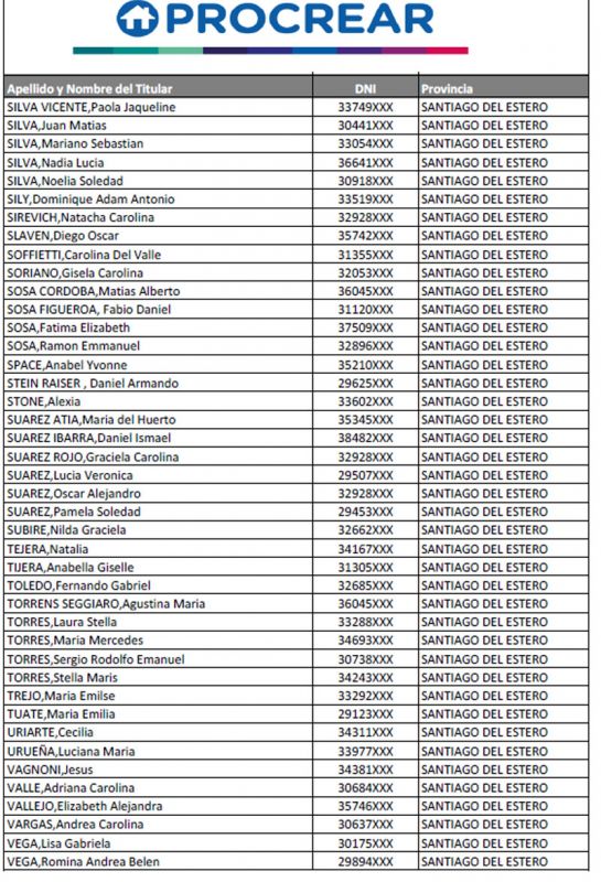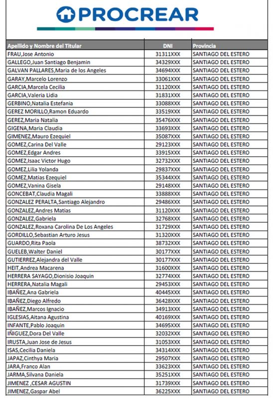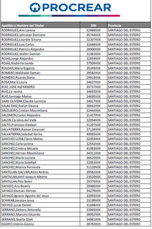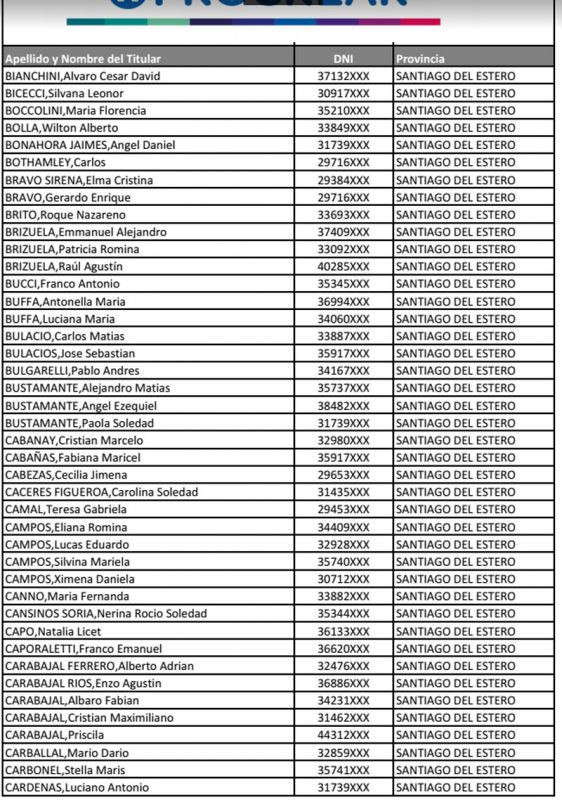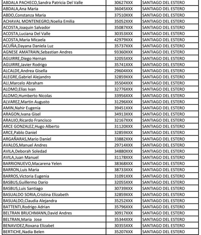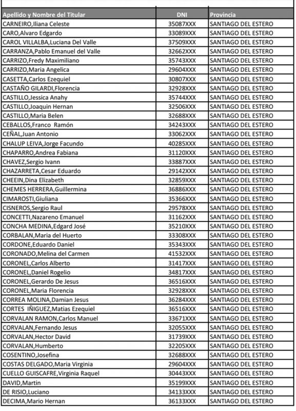 Santiago del Estero obtuvo 437 lugares, que incluyen los siguientes beneficiarios (la nómina es pública, pero se requiere no publicar el DNI completo):