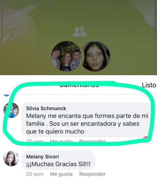 "Melany, me encanta que formes parte de mi familia, sos un ser encantador y sabés que te quiero mucho", le respondió su "suegra", hace aproximadamente cinco meses atrás.