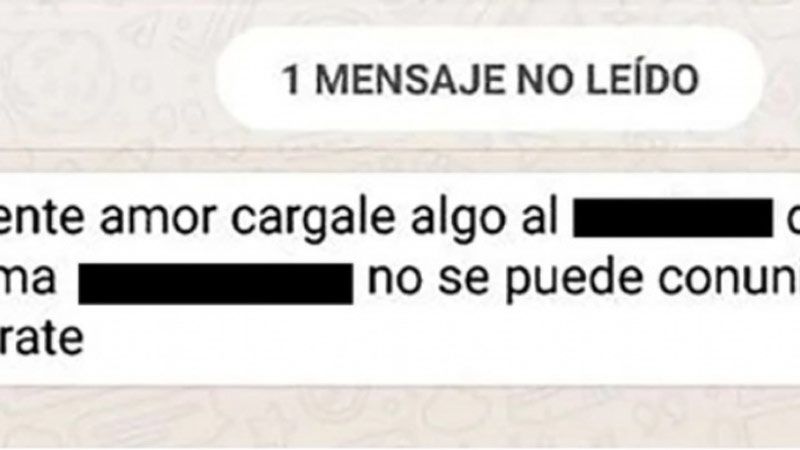 "Urgente, amor". De esta manera comienza un mensaje que comenzó a viralizarse por WhatsApp, donde se le pide a quien lo reciba que cargue crédito a un determinado número porque "mamá no se puede comunicar". Y termina con un contundente "apurate".