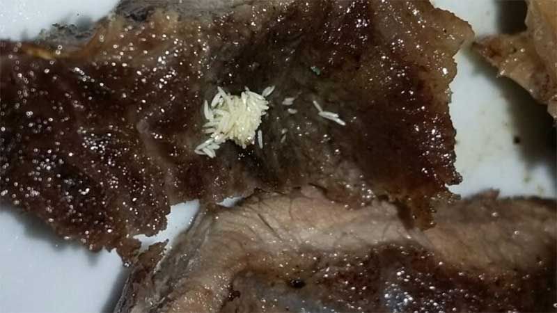 Detallaron que entre carne de los tallarines descubrió la presencia de desagradables gusanos que se mezclaba con su comida. Inmediatamente, se levantó y le reclamó al encargado.