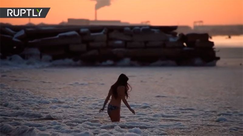 Se trata de Zarina Andriúshina, la joven ingresó al mar Caspio congelado a 17 grados bajo cero y el video se viralizó.