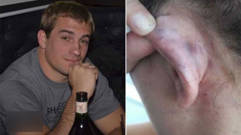 La víctima también publicó una foto en una red social, en la que se puede percibir un fuerte hematoma detrás de una oreja.