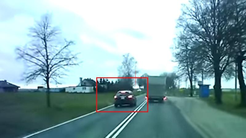 Los ocupantes de otro coche graban un intento de adelantamiento en un lugar donde está ‘claramente prohibido’. En el pavimento se puede observar una doble línea continúa de proporciones casi bíblicas, que el ‘piloto despistado’ pasó por alto.