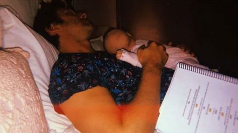La actriz y madre de la beba compartió en redes sociales una imagen del actor chileno durmiendo junto a su hija.