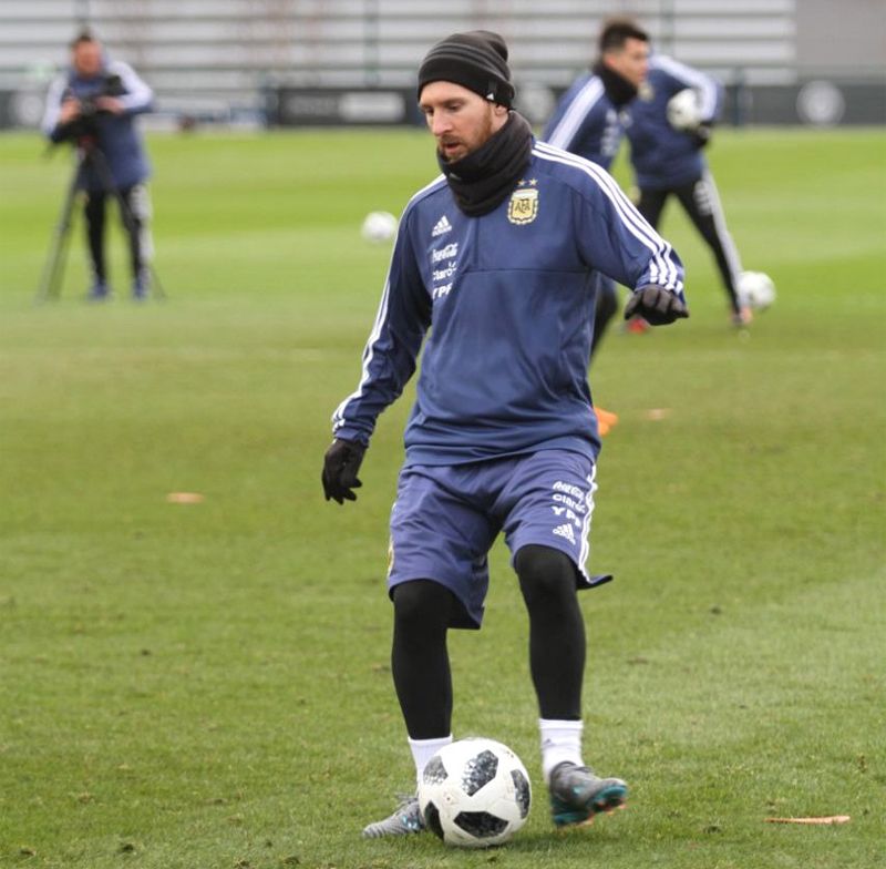 El crack hizo de las suyas durante el entrenamiento del conjunto albiceleste.