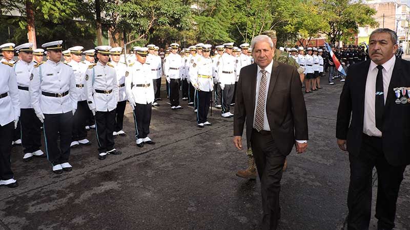 Para concluir se entonó la Marcha “A Las Malvinas”, con el acompañamiento de la Banda de Música de la Policía de la Provincia. Tras ello el jefe de la Agrupación “2 de Abril”, teniente coronel José Horacio Montiel, solicitó la autorización al vicegobernador Neder para dar inicio al dispositivo desfile, con la intervención de los ex combatientes acompañados de sus familiares, escuadrones de Gendarmería Nacional, Prefectura Naval Argentina, Policía Federal, Servicio Penitenciario Federal, brigadas de la Policía de la Provincia, alumnos del Liceo Militar “Juan Francisco Borges” y de la Escuela de Cadetes “Lorenzo Lugones”.
