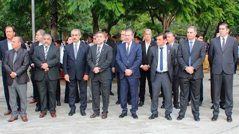 El izamiento de las banderas argentinas y de Santiago del Estero, estuvo a cargo de autoridades de los tres Poderes del Estado provincial. A continuando se colocaron ofrendas florales lo que significo el inicio formal del acto.
