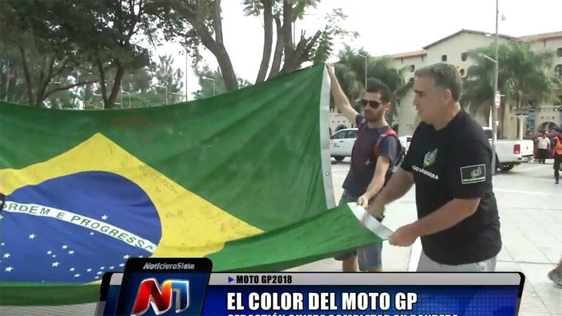 "Vine para conseguir autógrafos de Valentino Rossi y Marc Márquez", contó el hombre a Noticiero 7. " Quiero tener un atleta de cada modalidad deportiva que fue campeón mundial u olímpico, que deje presente la historia de él en la bandera de Brasil", agregó.