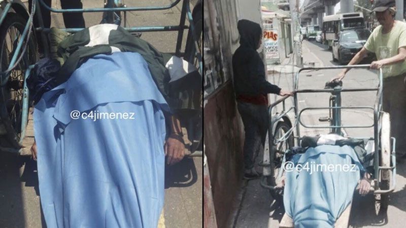 Él no pudo encontrar ayuda para trasladarla y no tuvo otra opción que colocar una tabla en su "triciclo" para recostarla y él mismo llevarla al hospital.