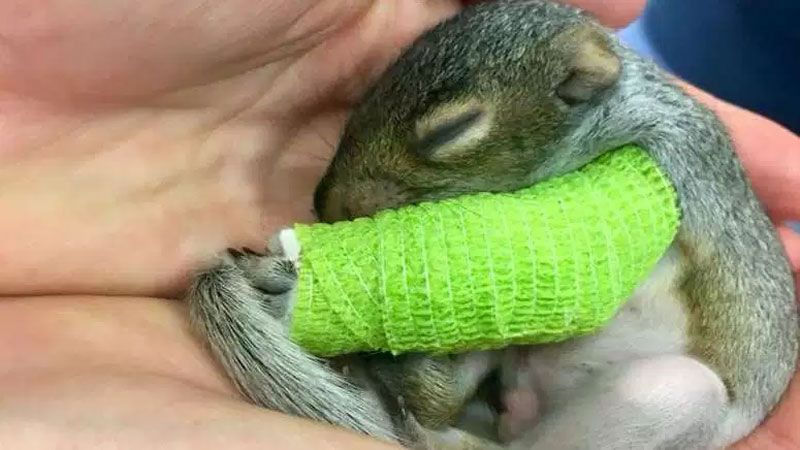 Una tormenta de viento en el oeste del estado de Nueva York dejó a muchos residentes sin electricidad la semana pasada, y también dejó a una bebé ardilla con una pata delantera rota.