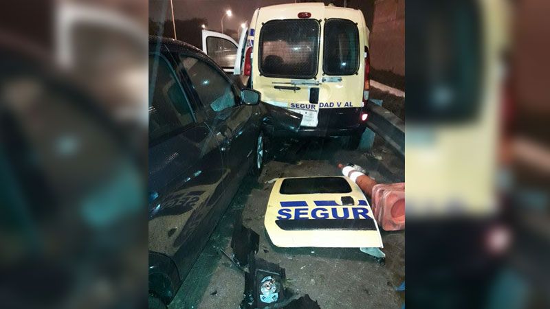 A los pocos minutos, un automóvil Volkswagen Gol Trend, color gris, impactó desde atrás a la camioneta afectada a la fuerza de la policía provincial. Tras el fuerte impacto, colisionó de igual manera con una motocicleta marca Yamaha, propiedad de un efectivo policial, que se encontraba en el operativo de control vehicular. Al mismo tiempo, provocó lesiones al efectivo policial apostado en la zona.
