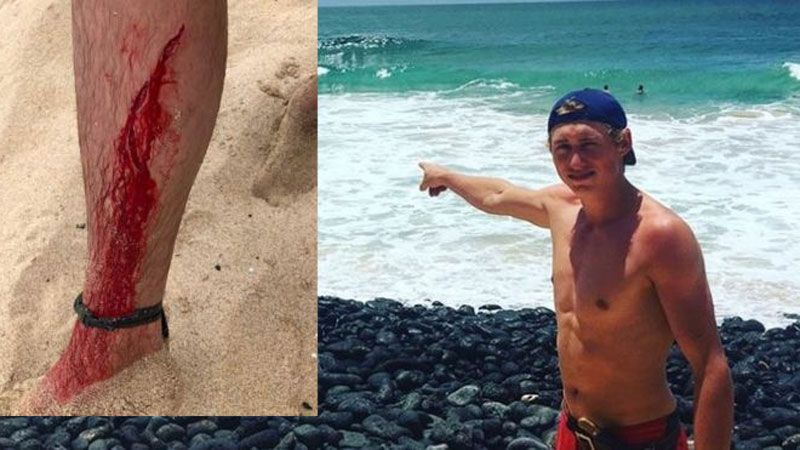 El pasado jueves, el joven estaba en su tabla de bodyboard disfrutando de las olas del Pacífico cuando sintió que algo golpeó su pierna.