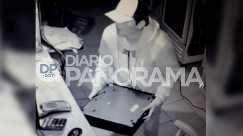Por suerte, las cámaras de seguridad del negocio lograron registrar al delincuente y el momento en que se lleva una caja con dinero en efectivo.