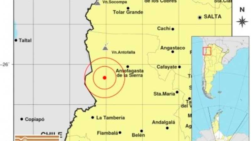 El temblor tuvo una intensidad de 4.6° en la escala de Richter, fue a las 7.52 y tuvo epicentro 71 km al sudoeste de la villa de Antofagasta De La Sierra, según el informe del Instituto Nacional de Previsión Sísmica.