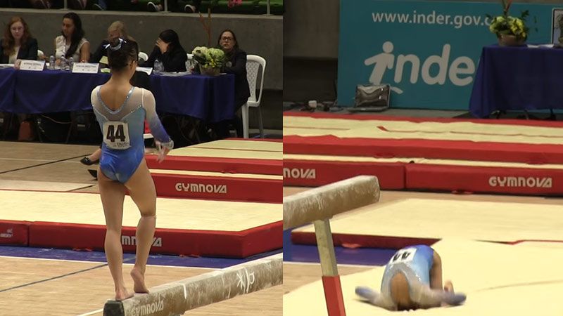 La "campeona con gafas", como la apodó la prensa local, estuvo por más de un minuto realizando distintos movimientos sobre la viga, sin embargo, al momento de finalizar su pasada no calculó la distancia con la lona y el peso de su cuerpo cayó sobre su nuca.