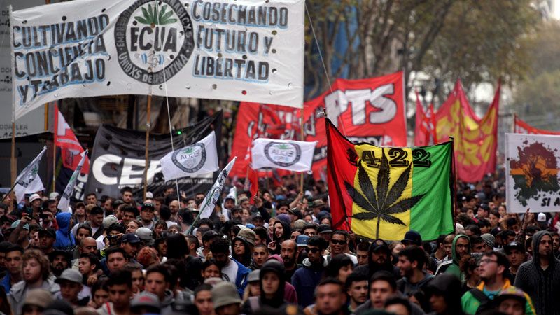 Miles de personas marcharon este sábado desde la Plaza de Mayo al Congreso, en la Ciudad de Buenos Aires, para pedir la despenalización del cultivo domiciliario del cannabis y la efectiva implementación de la ley que autoriza su uso medicinal.