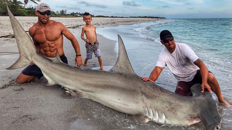 Este domingo, Sudal logró pescar un inmenso tiburón martillo de 3,6 metros. Majestuoso. Imponente. Un ejemplar único. Como suele hacer con sus presas, se tomó una fotografía junto al animal y parte de su equipo. Sonriendo.