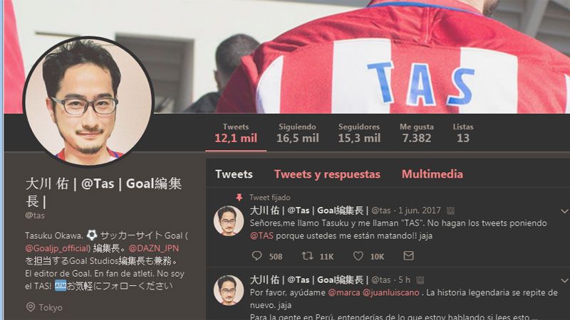 Tasuku Okawa es el editor japonés del sitio GOAL.com y utiliza desde siempre la cuenta de Twitter @TAS Hasta aquí nada de otro mundo si no fuera que este lunes el TAS (Tribunal Arbitral del Deporte por sus siglas en inglés) sancionó duramente a Paolo Guerrero y lo dejó sin la chance de formar parte de la Selección de Perú en su regreso a la Copa del Mundo.