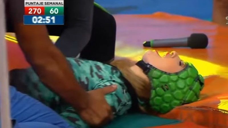 La joven cayó de espaldas desde casi cinco metros de altura. El accidente fue transmitido en vivo y generó preocupación en todo el staff. Mirá el video.