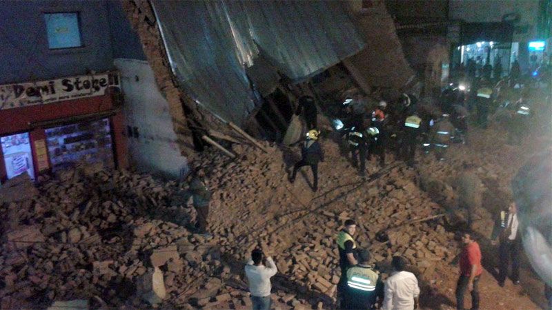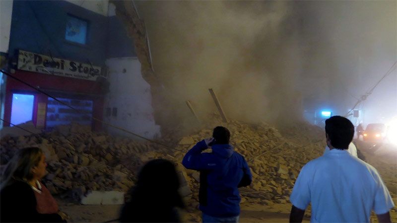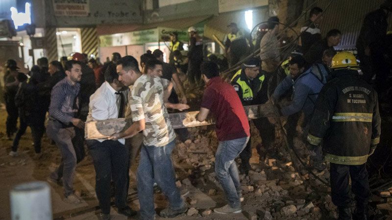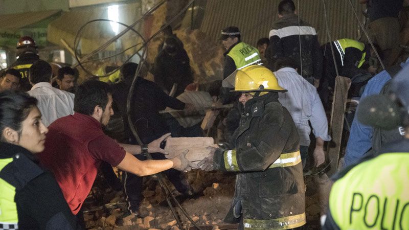 Alrededor de las 20.30, los vecinos escucharon un estruendo, que algunos describieron como una explosión. Al instante, se empezaron a oír las sirenas de los bomberos y la policía: sobre la calle 24 de Septiembre al 500, el edificio había desaparecido. Una nube de polvo tapó la cuadra y cientos de ladrillos estaban esparcidos por el suelo.