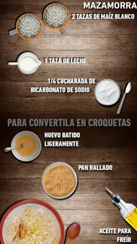 Hay que dejar en remojo dos tazas de maíz blanco durante toda la noche. Al día siguiente se enjuaga, se cambia el agua y se hierve en una olla, preferentemente de barro. Es conveniente agregar agua caliente cada tanto para evitar que se evapore todo el líquido y se pegue, y revolver cada vez más a medida que avanza la cocción.