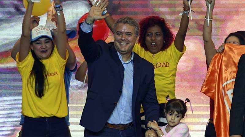 Duque, quien esta noche aún no se había pronunciado, pertenece al partido Centro Democrático que responde al ex presidente Álvaro Uribe y que se opuso al acuerdo de paz con las FARC.