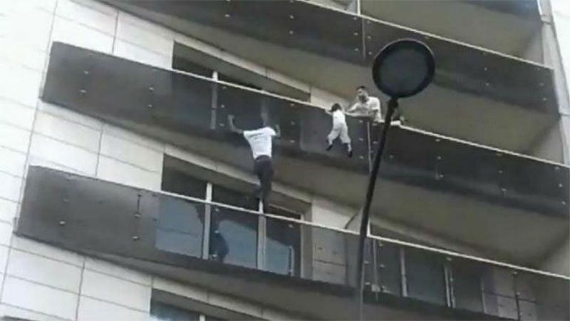 Grabaciones de video muestran cómo el joven de 22 años trepó el sábado pasado con una increíble velocidad de un balcón a otro por la fachada hasta alcanzar al niño, que se aferraba al borde en la parte exterior del edificio.