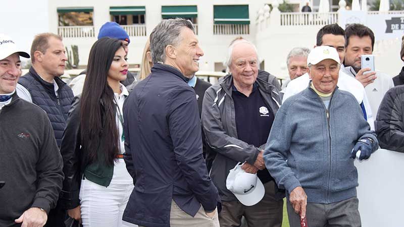 Tras mantener una reunión con el gobernador Zamora, Mauricio Macri recorrió el green del campo de golf inaugurado ayer.