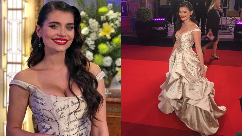 La joven actriz transitó la alfombra roja con un vestido de la diseñadora Verónica de la Canal, con importantes palabras estampadas, como igualdad, aborto legal, educación sexual y viva nos queremos.