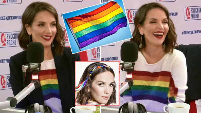 Una vez más, Natalia Oreiro desafía las leyes criminales de Rusia y va a la radio nacional pública de ese país con la bandera gay en su cuerpo.