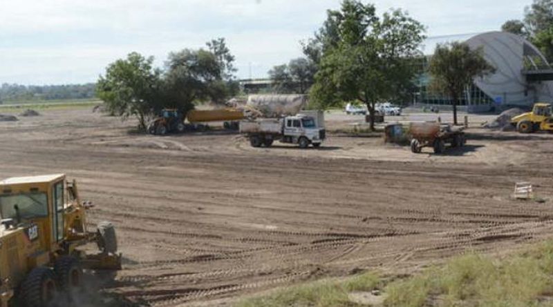 Un fenomenal despliegue de máquinas se puede apreciar a la vera del río Dulce, entre el Jardín Botánico y el puente carretero. La UTE Astori y Mijovi fue la que se quedó con la adjudicación de la obra que actualmente se encuentra en su primera etapa, que es la de la nivelación y emparejamiento del terreno donde será levantado, informaron fuentes del Ministerio de Obras Públicas.