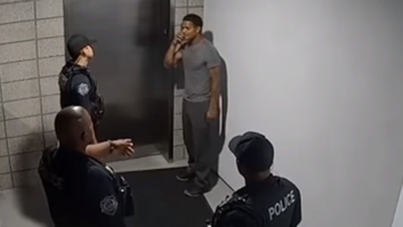 Cuatro oficiales estánsuspendidos mientras el departamento investiga el incidente del 23 de mayo en el que se ve a los oficiales golpeando al hombre, que no parece resistirse al arresto. El video es de una cámara de vigilancia de complejo de apartamentos.