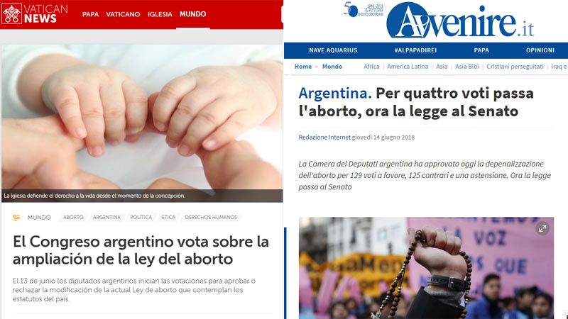 Los diarios del Vaticano reflejaron el reñido debate en la Cámara de Diputados de la Argentina por la ley de legalización del aborto, que tras dos meses de análisis obtuvo este jueves media sanción y será girada al Senado para su aprobación definitiva.