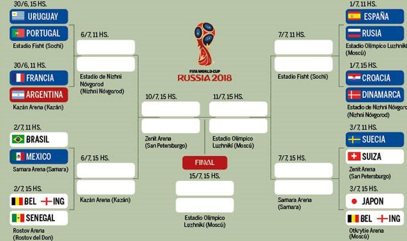 Los cruces de octavos de final del Mundial comienzan a definirse, a falta de la última jornada de la fase de grupos en Rusia.